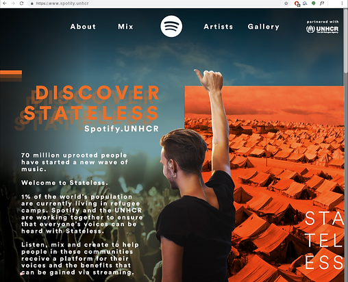 After launching the genre on the platform a microsite is created to engage people with the story and the music. And to encourage people to mix their own "Stateless" tracks, adding to the genre and thus donating to the cause.